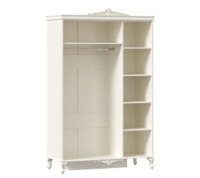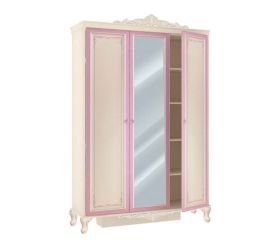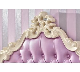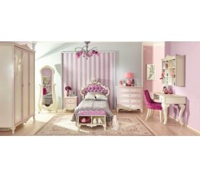 Молодежная Маркиза, за счет необычных элементов декора, таких как причудливых ручек-бутонов, короны, венчающей шкафы, оригинальной спинки кровати, вызывает восхищение и желание любоваться ею. Интересное сочетание цветов теплого белого с лавандовым радует, наполняет комнату ароматом лета, солнца и безмятежного отдыха! Фасады украшены тонким узором, благодаря которому мебель становится изысканным украшением интерьера. Грациозные резные ножки, бережно поддерживающие мебель, мягкое, с пуговицами, сиденье банкетки, перекликающееся со вставкой в изголовье кровати, делают комнату изысканной и неповторимой. А замечательный стол с просторной столешницей и полкой под ней позволяет удобно расположиться для чтения и занятий творчеством. А еще маленькая модница сможет ухаживать за собой, сложив в 2 ящика стола свою первую косметику. Открытая полка над столом, за счет короны и секций-кубиков, смотрится оригинально и подойдет для размещения книг, игрушек, поделок и других вещей, необходимых для развития ребенка и которые должны быть всегда под рукой. Мягкая банкетка, за счет яркого сиденья и оригинальных ножек является стильным дополнением интерьера. Напольное зеркало за счет шикарной резной рамы станет украшением молодежной, при этом конструкция позволяет легко регулировать угол наклона - поэтому пользоваться таким зеркалом очень удобно