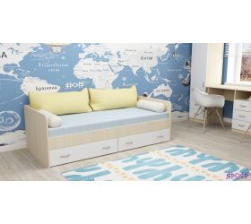 Кровать с ящиками Детская Колибри (дуб сонома/ателье светлое,акрил белый)