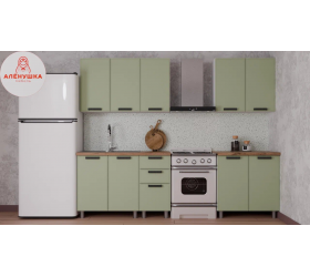 Кухня Салли 2.0м с окапом (корпус белый/сандал белый, сандал серый) 26мм дуб вотан