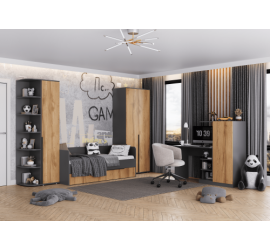 [name] => Прихожая Стил левая темно серый лофт / дуб золотистый